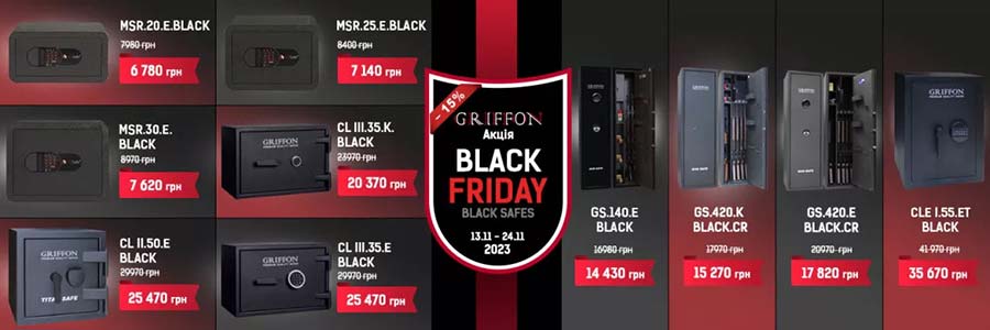 УВАГА! Чорна п'ятниця - на сейфи GRIFFON SAFES знижка - 15%!