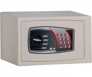 - Оборудован электронным кодовым замком.Замок питается от батареи типа „крона” (9 В), которая находится в середине сейфа. Если батарея разряжается ниже допустимого уровня сработает индикация, которая укажет на это, если же ее все таки не успеют заменить то на внешней части замка находятся две клеммы, приложив другую батарею к которым вы сможете отворить сейф.Электронный кодовый замок разрешает устанавливать от 6 до 10 цифр в кодовую комбинацию. После трех неудачных попыток отворить сейф - он автоматически блокируется на некоторый интервал времени.