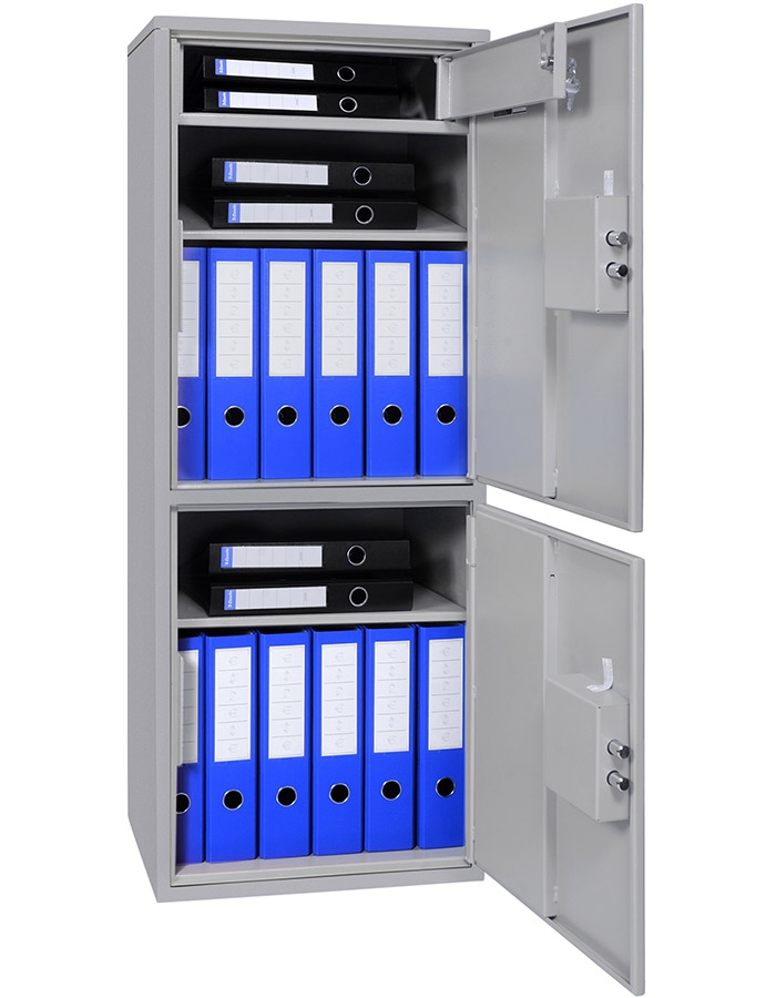 - Обе секции оборудованы ключевыми замками сувальдного типа (в комплекте 2 ключа).