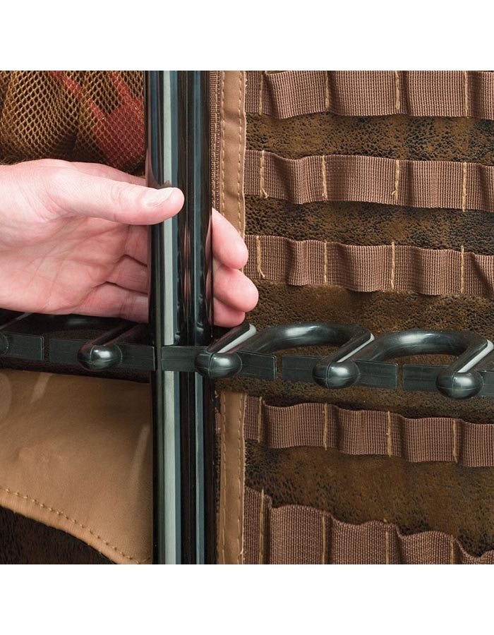 На внутренней поверхности двери сейфа имеются два удобных сетчатых кармана, сумка, ленточные держатели и крючки.