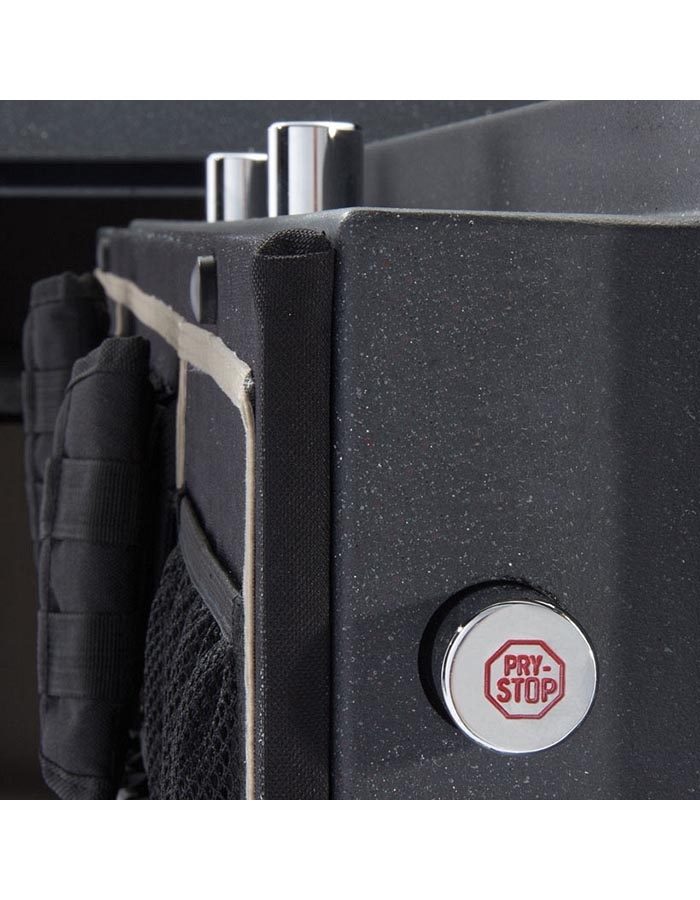 Сейф BROWNING PP49FE имеет усиленный корпус. Дверь усиленная и оборудована мощным многосторонним поворотным ригельным запирающим механизмом. Трехсторонняя ригельная система запирания с 5-тью активными хромированными вращающимися ригелями и 3-мя пассивными ригелями, что делает невозможным их перепиливание. Устойчивость к взлому сейфа – не менее 30Ес.