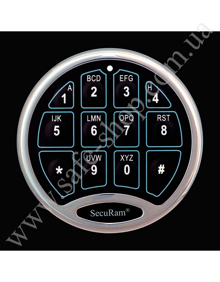 Cейф оборудован высокосекретным электронным кодовым замком Sargent & Greenleaf (США). Этот замок Вы можете эксплуатировать как в режиме одного кода, так и в режимах, используя от двух до семи кодов (мастер-код, пользовательские коды). Замок питается от батареи типа „крона” (9 В), которая находится в середине кодонабирателя сейфа. Время ее функционирования 1-1,5 года. Если батарея разряжается ниже допустимого уровня - то при каждом открытии замка будет звучать длительный звуковой сигнал предупреждения. Батарею следует заменить, предварительно сняв защитную крышку в нижней части замка. Электронный кодовый замок разрешает устанавливать от 6 до 8 цифр в кодовую комбинацию. После трех попыток ввода неверного кода замок сейфа автоматически блокируется на 5 минут. - Защита