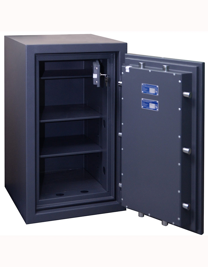 - Оборудован двумя ключевыми сувальдными замками STUV (Германия) класса VDS1 сейфового типа (по два ключа к каждому замку в комплекте).