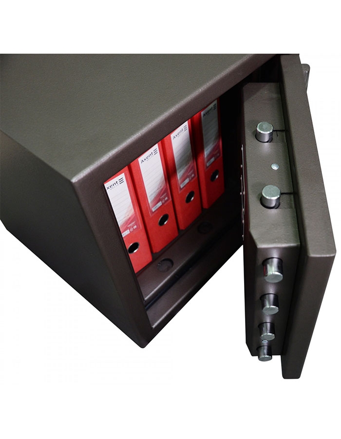 - Конструкция ригельной системы исключает вскрытие сейфа путём силового воздействия на ручку.