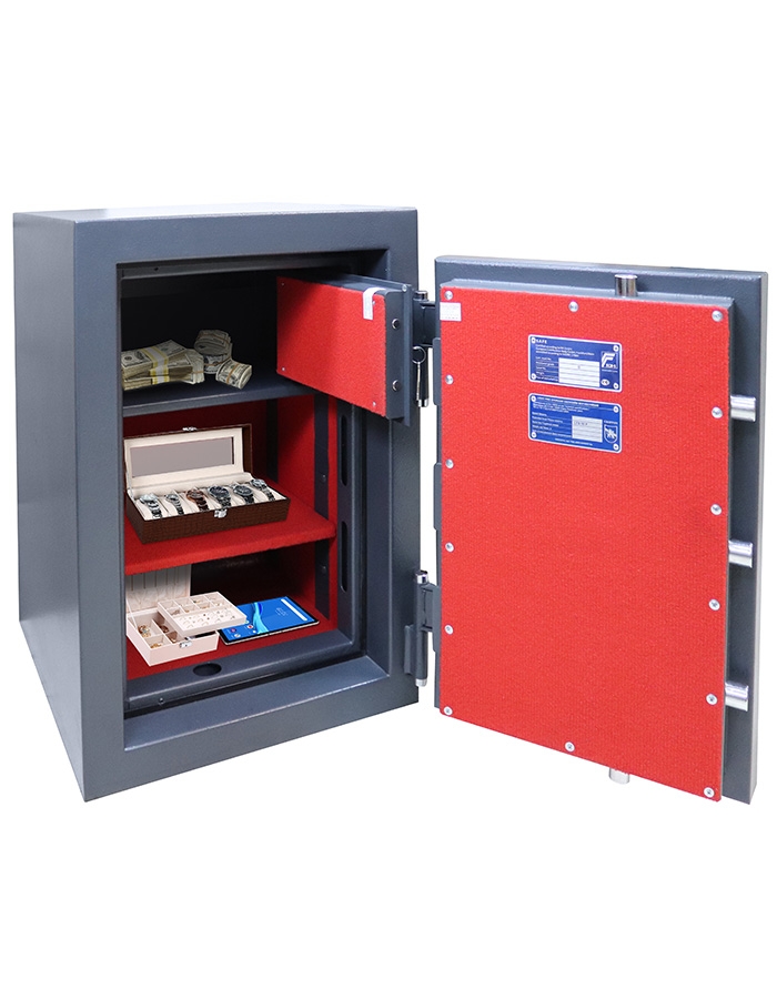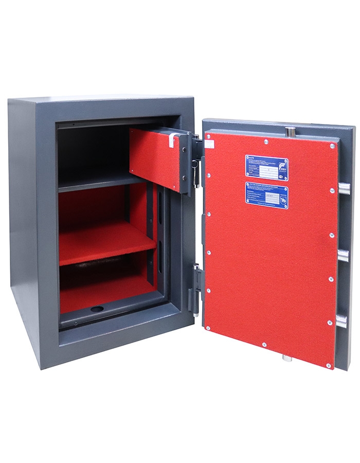 - В целях увеличения надежности сейфа против взлома, места крепления замков защищены мощными калеными пластинами из легированной стали.