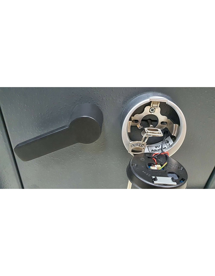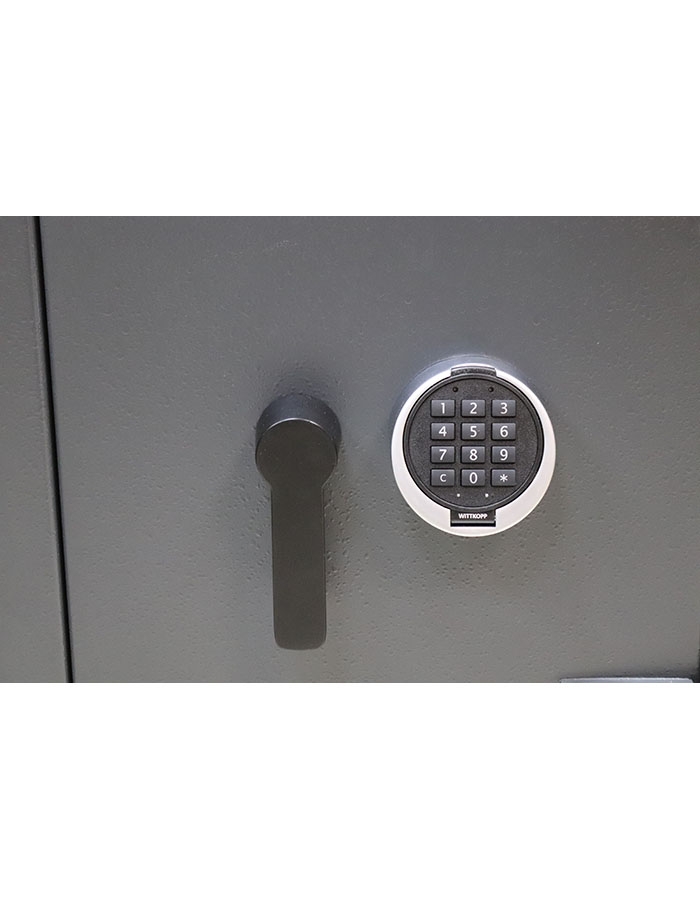- Оборудован электронным кодовым замком Carl Wittkopp (Германия) высокой секретности, сертифицированного по классу VDS2 и аварийным ключевым замком.
