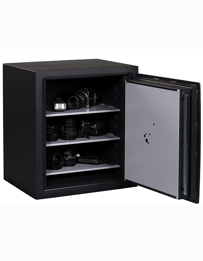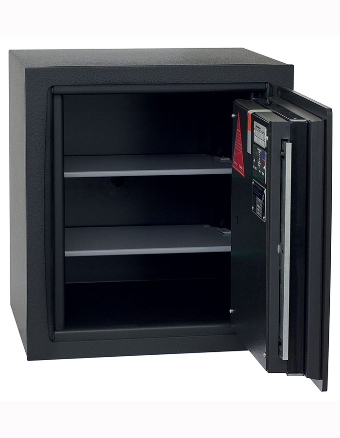 - Максимальная прочность благодаря усиленной двери толщиной 87 мм, прочному минеральному композиту, прочным петлям и цельному неразрезному ригелю по всей высоте двери сейфа.