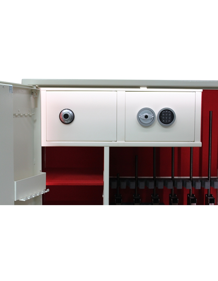 - Оборудован 2-мя внутренними патронными отделениями: с кодовым механическим и электронным кодовым сейфовыми замками M-LOCKS (Нидерланды).