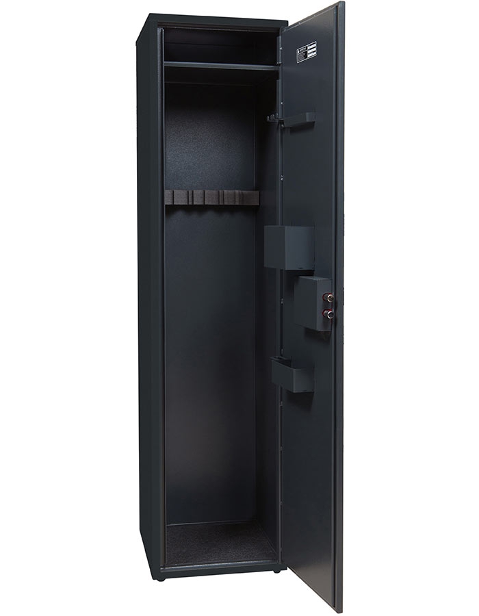 Сейф оружейный GLS.340.K предназначен для хранения 5-ти стволов длиной до 1360 мм при снятой полке и 1260 мм при установленной полке.