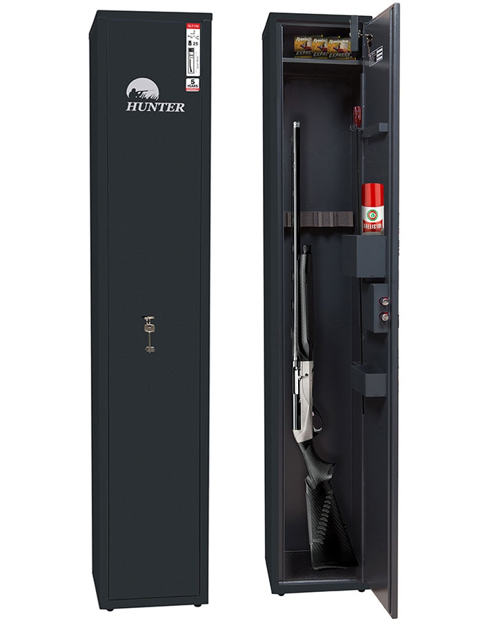 Сейф оружейный HUNTER GLT.150.K предназначен для хранения 3-х стволов длиной до 1360 мм.
