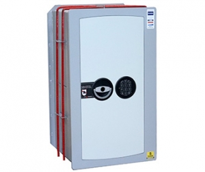 - Оборудован электронным кодовым замком M-LOCKS (Нидерланды) высокой секретности, сертифицированным на соответствие международным стандартам (класс VDS 2, class B).Замок питается от батареи типа „крона” (9 В), которая находится в середине сейфа. Время ее функционирования 1-1,5 года. Если батарея разряжается ниже допустимого уровня - то при каждом открытии замка будет звучать длительный звуковой сигнал предупреждения. Если же ее все таки не успеют заменить - то на внешней части замка находятся две клеммы, приложив к которым другую батарею, Вы сможете отворить сейф.Электронный кодовый замок разрешает устанавливать 6 цифр в кодовую комбинацию. После 4-х попыток ввода неверного кода замок сейфа автоматически блокируется на 5 минут.