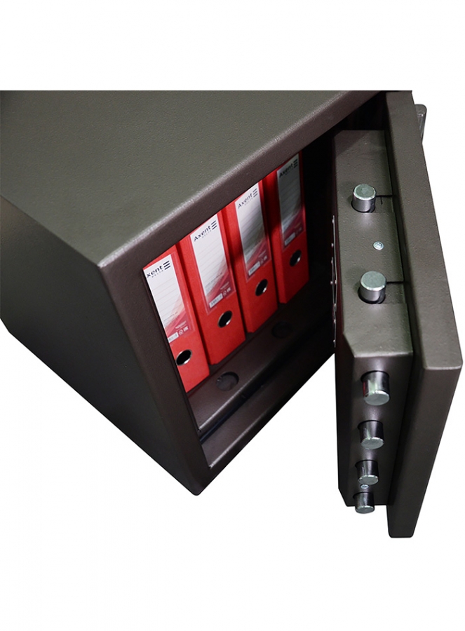 - В целях увеличения надежности сейфа против взлома, места крепления замков защищены мощными калеными пластинами из легированной стали.