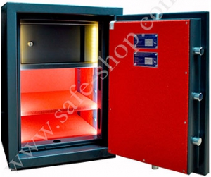 - Опционально (дополнительно) сейф может быть оснащен LED-подсветкой, которая автоматически включается при отпирании двери сейфа. Подсветка также автоматически выключается после запирания двери сейфа.