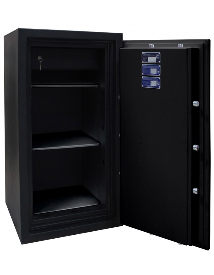 - Внешние петли, позволяющие открывать дверь сейфа на 180°, не перекрывая дверной проем.