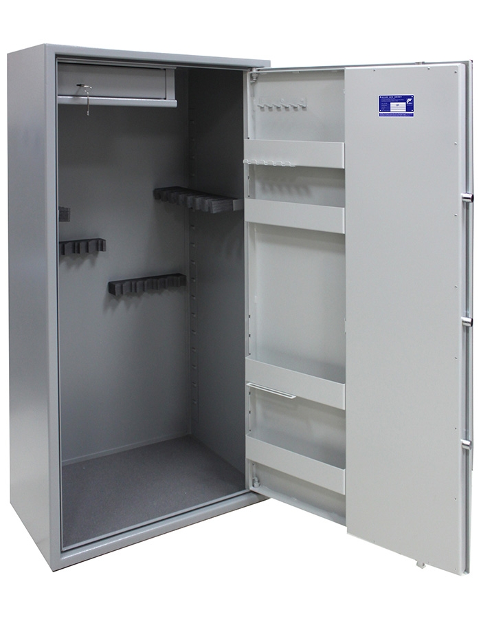 Сейф оружейный GRIFFON GE.750/52.E.L предназначен для хранения 18-ти стволов: 11-ти стволов длиной до 1335 мм и 7-8-ми стволов длиной до 1450 мм.
