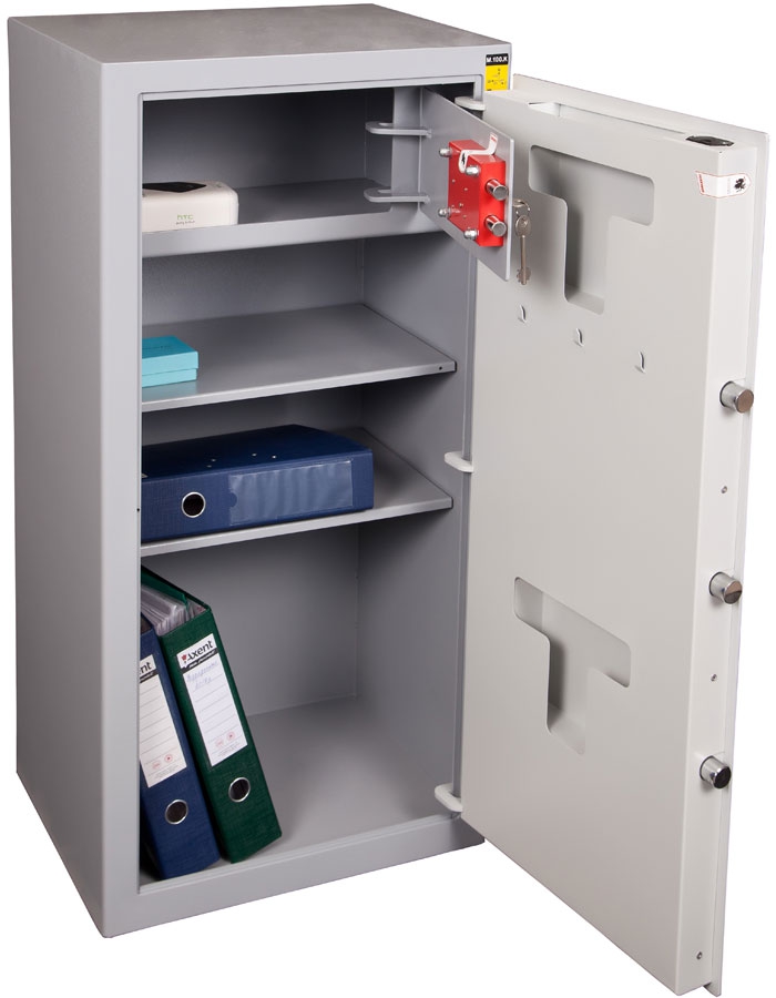 - Сейф оборудован двумя съемными полками (три зоны хранения).