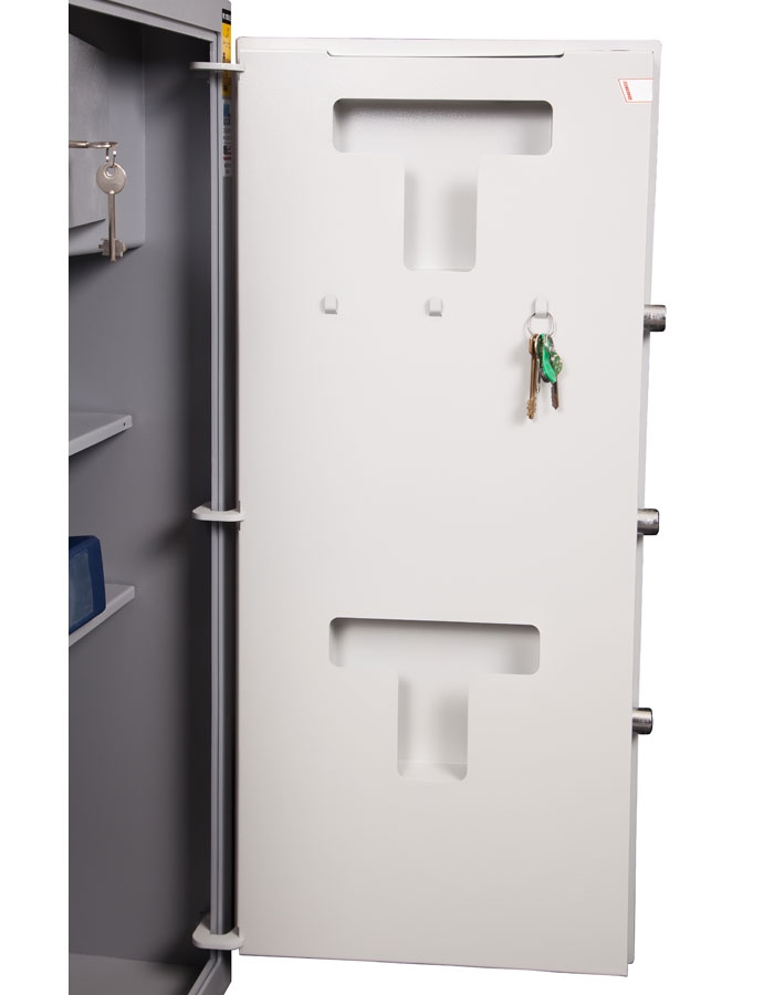 - Внутренняя поверхность двери имеет два кармана для удобного размещения документов (паспорта, трудовые книжки) и оборудована тремя крючками для хранения ключей.
