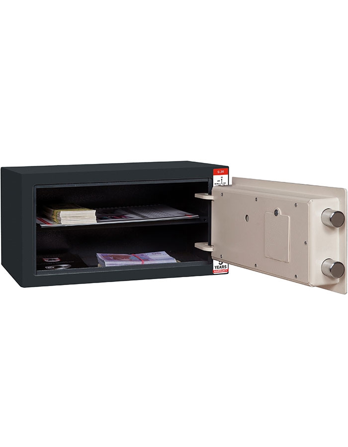 - Сейф оборудован одной съемной полкой (две зоны хранения).