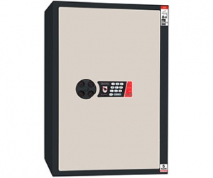 - Оборудован электронным кодовым замком.Замок питается от четырех батарей типа "АА", которые находятся в середине сейфа. Время их функционирования 1-1,5 года. Если батареи разряжаются ниже допустимого уровня - то при каждом открытии замка будет звучать длительный звуковой сигнал предупреждения. Если же их все таки не успеют заменить - то на внешней части замка находятся две клеммы, приложив к которым новую батарею типа „крона” (9 В), Вы сможете отворить сейф.Электронный кодовый замок разрешает устанавливать 6 цифр в кодовую комбинацию. После 4-х попыток ввода неверного кода замок сейфа автоматически блокируется на 5 минут.