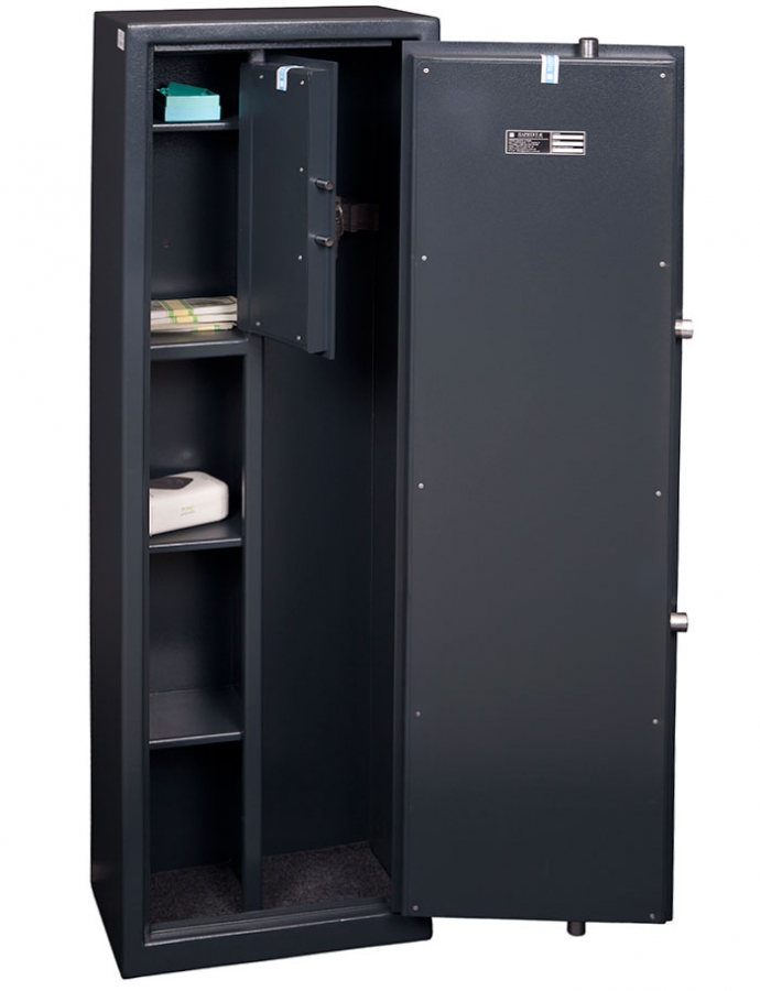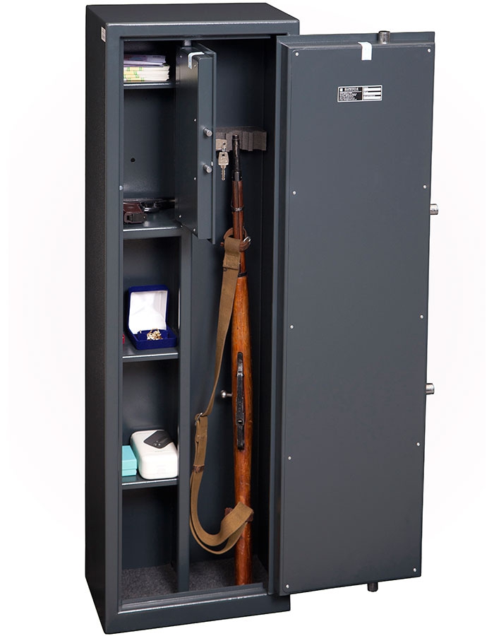 - Наличие усиленного внутреннего патронного отделения с дополнительной полкой, запираемого на ключ (в комплекте 2 ключа).