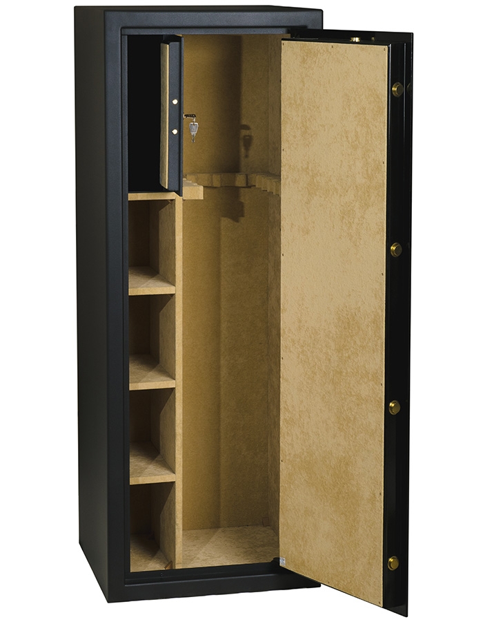 Сейф оружейный G.160.E GOLD предназначен для хранения 13-ти стволов (11 стволов длиной до 1220 мм, 2 ствола длиной до 1420 мм).