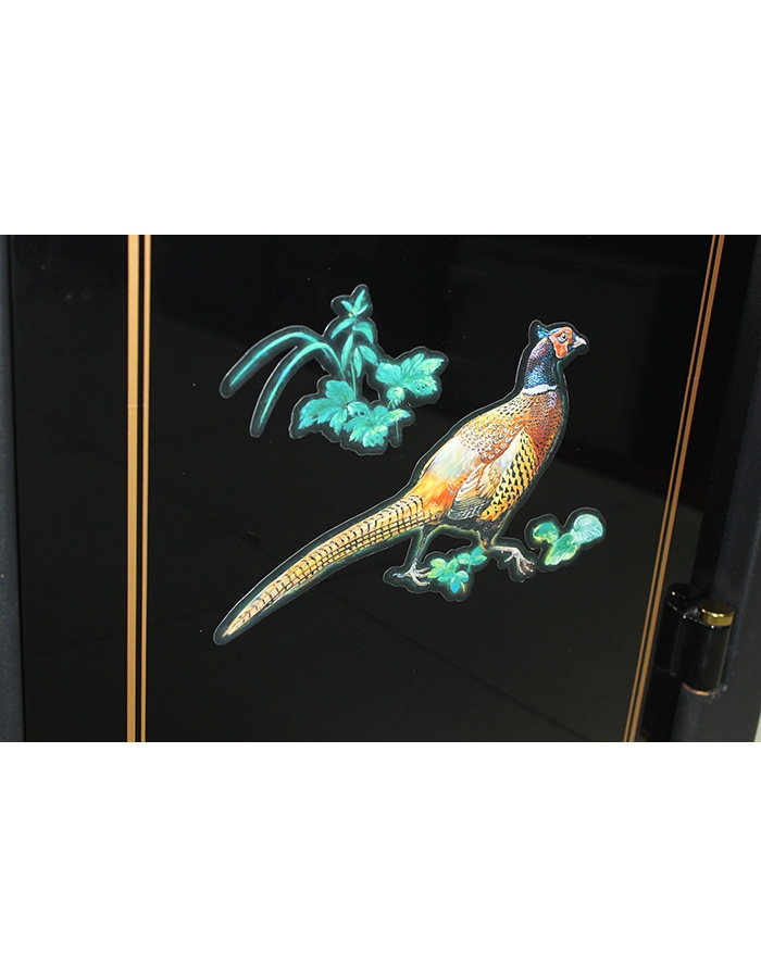 - Специальная внешняя отделка (класса LUX) с позолоченными элементами. Цвет двери - чёрный глянцевый RAL 9005, цвет корпуса - чёрный матовый RAL 9005.