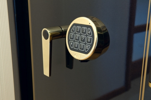 - Оборудован электронным кодовым замком KG Group (США) высокой секретности, сертифицированный по классу VDS2.Замок питается от батареи типа „крона” (9 В), которая находится в середине замка сейфа. Время ее функционирования 1-1,5 года. Если батарея разряжается ниже допустимого уровня - то при каждом открытии замка будет звучать длительный звуковой сигнал предупреждения. Батарею следует заменить, предварительно сняв защитную крышку в нижней части замка.Электронный кодовый замок разрешает устанавливать 6 цифр в кодовую комбинацию. После 4-х попыток ввода неверного кода замок сейфа автоматически блокируется на 5 минут.