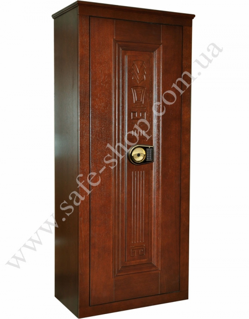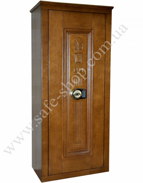 Эксклюзивный сейф СПАРТА EL GOLD с облицовкой деревом ценных пород предназначен для хранения до 6-ти стволов высотой до 1400 мм.