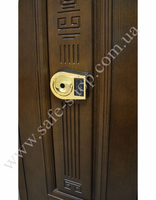 - Сейф изготовлен из высокопрочной стали и облицовывается декоративными панелями из дуба или ясеня с широкой гаммой оттенков.