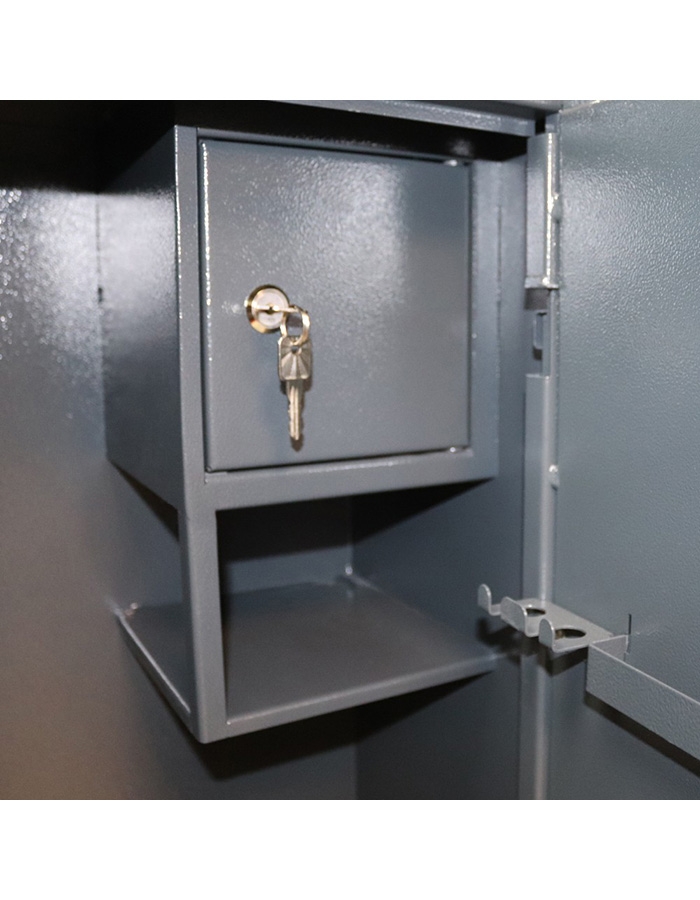 Наличие внутреннего (увеличенной емкости с полкой для хранения патронов и документов) патронного отделения, запираемого на ключ (в комплекте 2 ключа).