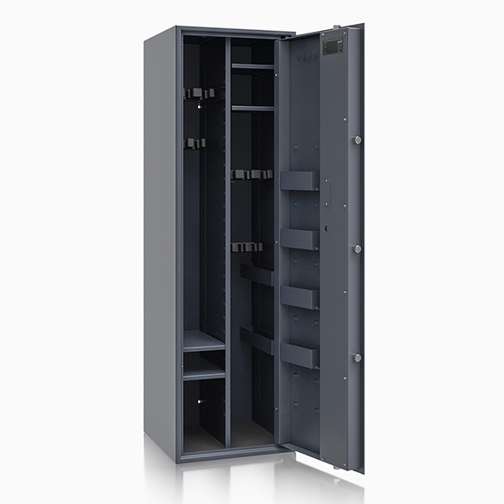 - Оборудован боковыми карманами на внутренней стороне двери и на внутренней боковой стенке сейфа для комфортного размещения боеприпасов.