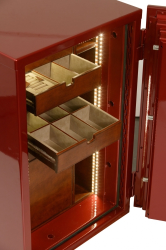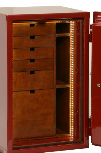 - Разнообразные декоративные панели (берёза, дуб, вишня, венге, красное дерево, олива и т.д.) и множество внутренних аксессуаров, таких как запираемые отделения различной высоты, выдвигаемые лотки для хранения мелких и одновременно драгоценных вещей, специальные кронштейны для ключей, подготовка для хранения оружия и многое другое делают сейфы KASO серии S200 максимально удобными для жизни.