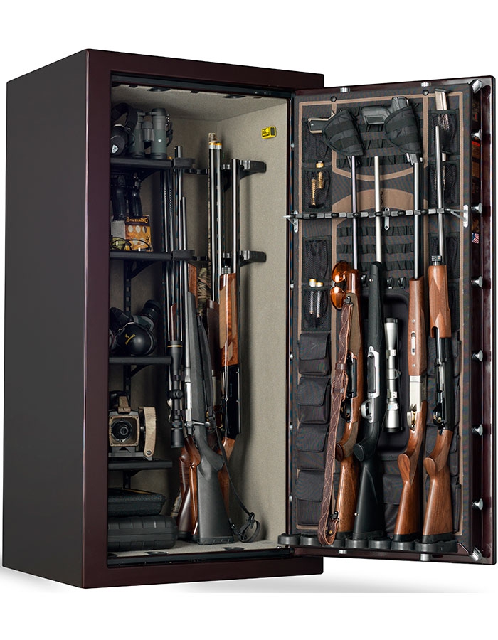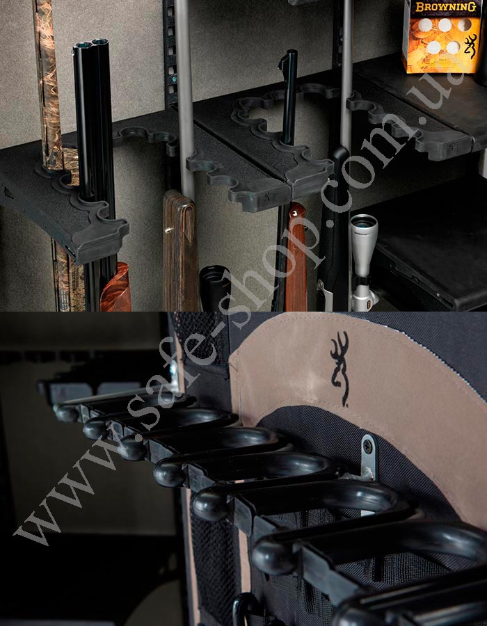 оружия BROWNING M33FE предназначен для хранения максимум 20 или 33 стволов высотой до 1390 мм (13 стволов при установленных полках + 7 стволов на двери сейфа или 26 стволов при снятых полках + 7 стволов на двери).