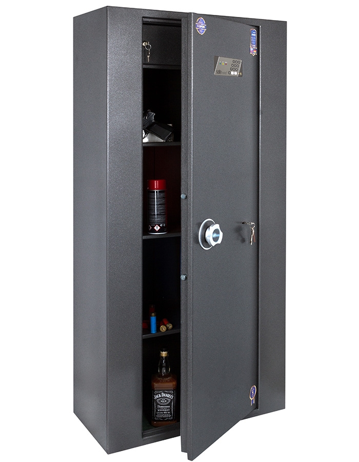 Сейф оружейный Safetronics MAXI 10PE-M/K5 предназначен для хранения 5-ти стволов длиной до 1300 мм.