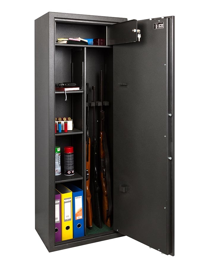Сейф оружейный Safetronics MAXI 5M/K3 предназначен для хранения 3-х стволов длиной до 1200 мм.