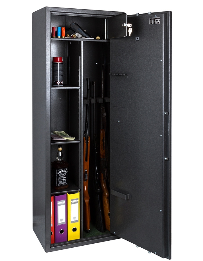 Сейф оружейный Safetronics MAXI 5PE-M/P3 предназначен для хранения 3-х стволов длиной до 1300 мм.