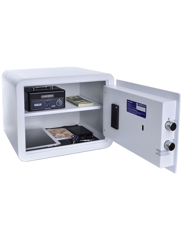 - Сейф оборудован одной съемной полкой (две зоны хранения).
