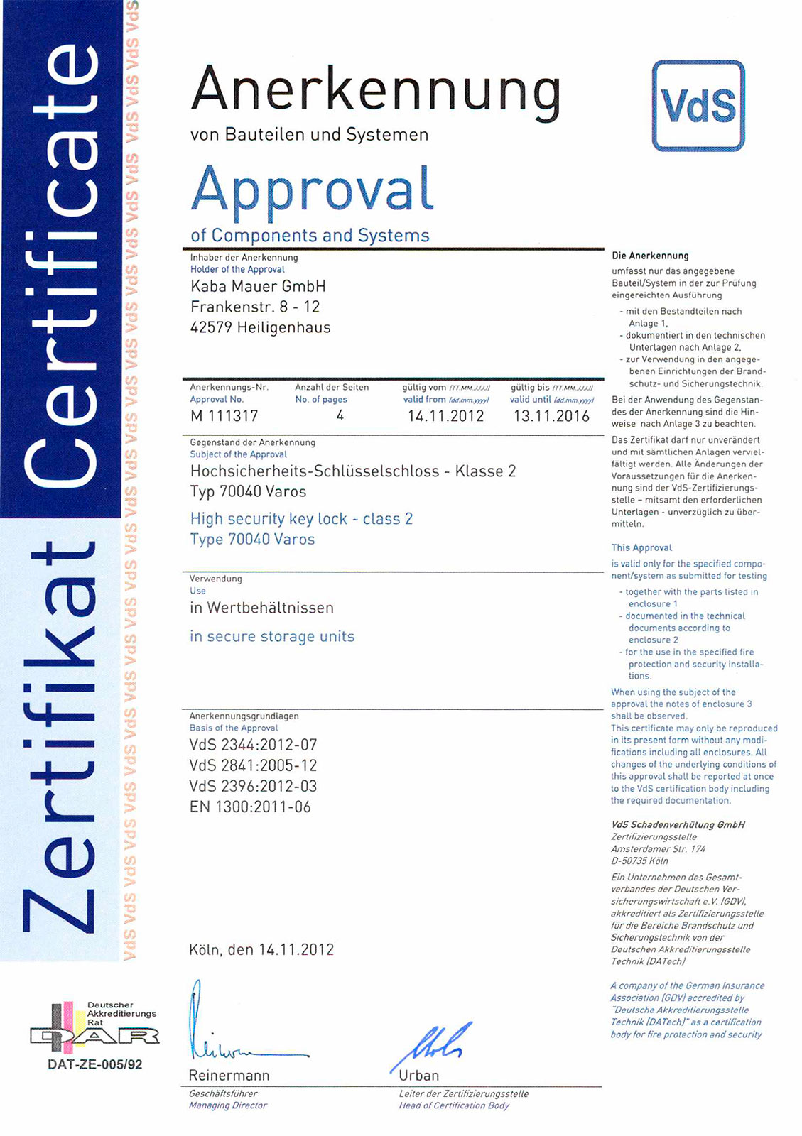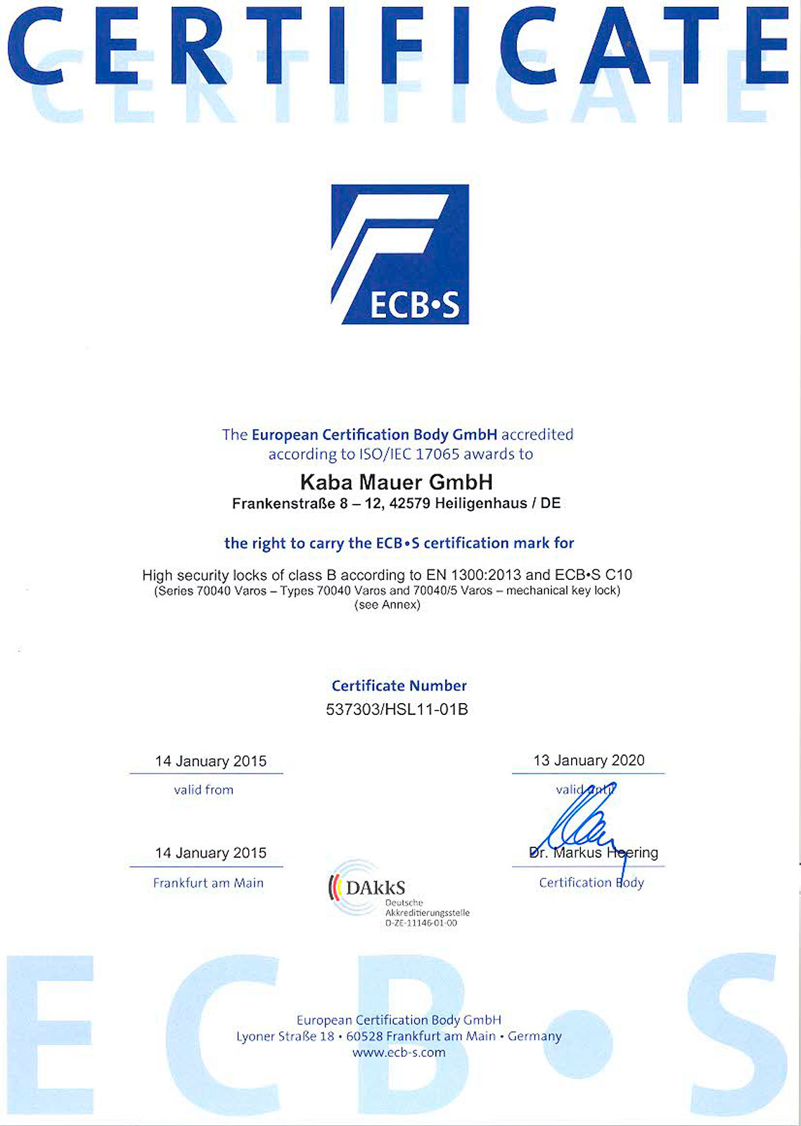 Производитель: | KABA MAUER (Германия) |