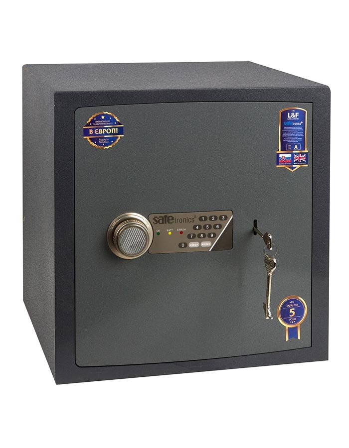- Электронный кодовый замок SAFEtronics (Словакия) + аварийный ключевой Lowe&Fletcher (Англия).
