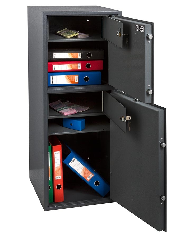 - В верхнем и нижнем отделении ключевой сейфовый замок Mauer (Германия) класса VDS 1.