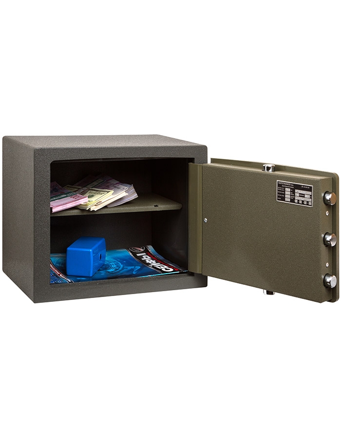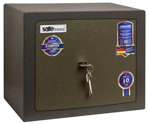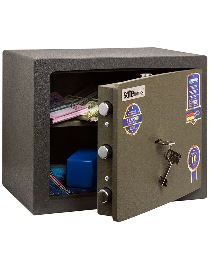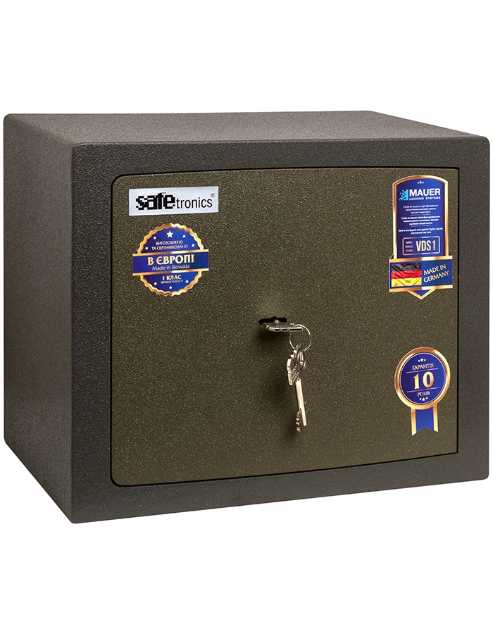 - Сейф оборудован ключевым сертифицированным сейфовым замком Mauer (Германия) класса VDS 1 (в комплекте 2 ключа, длина ключа 65 мм).