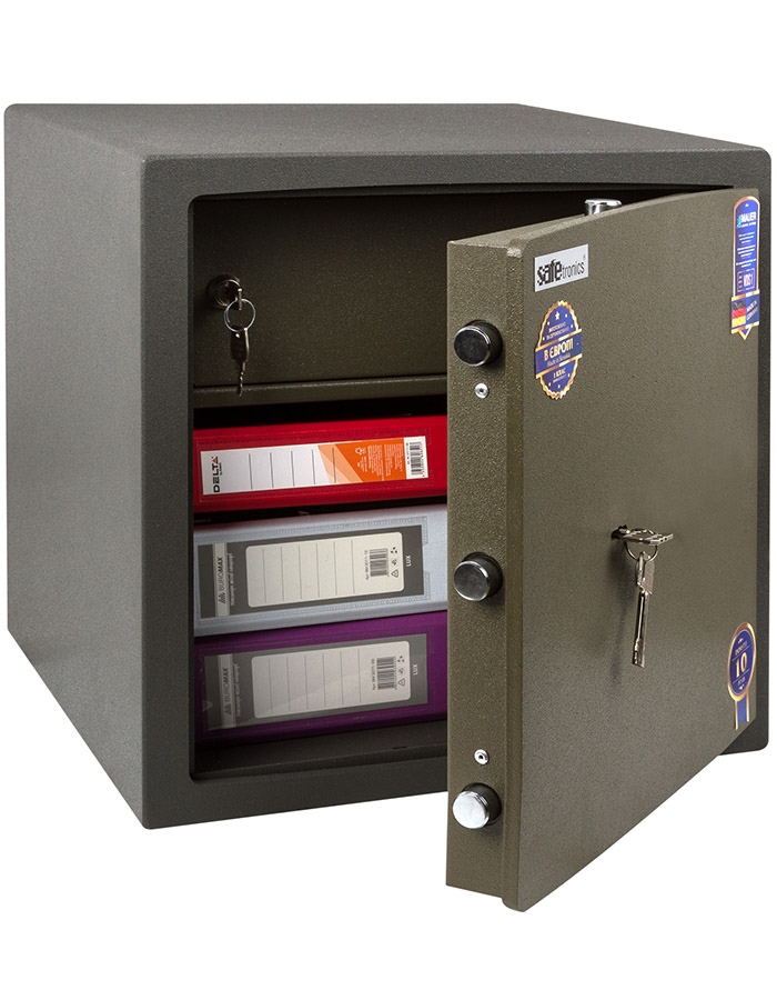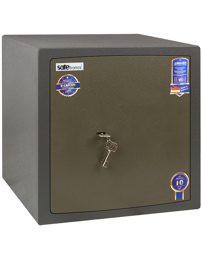 - Сейф оборудован ключевым сертифицированным сейфовым замком Mauer (Германия) класса VDS 1 (в комплекте 2 ключа, длина ключа 65 мм).