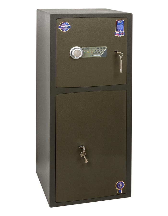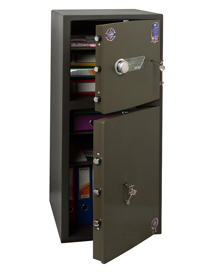- В верхнем отделении кодовый электронный замок SAFEtronics (Словакия) + аварийный ключевой замок MAUER (Германия) .