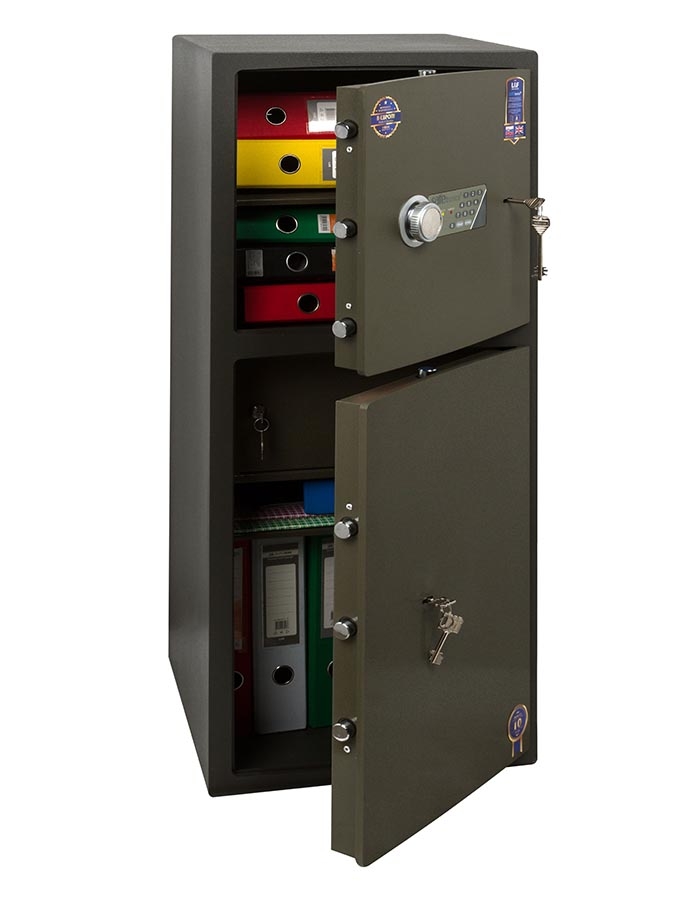 - В верхнем отделении кодовый электронный замок SAFEtronics (Словакия) + аварийный ключевой замок Lowe&Fletcher (Англия) .