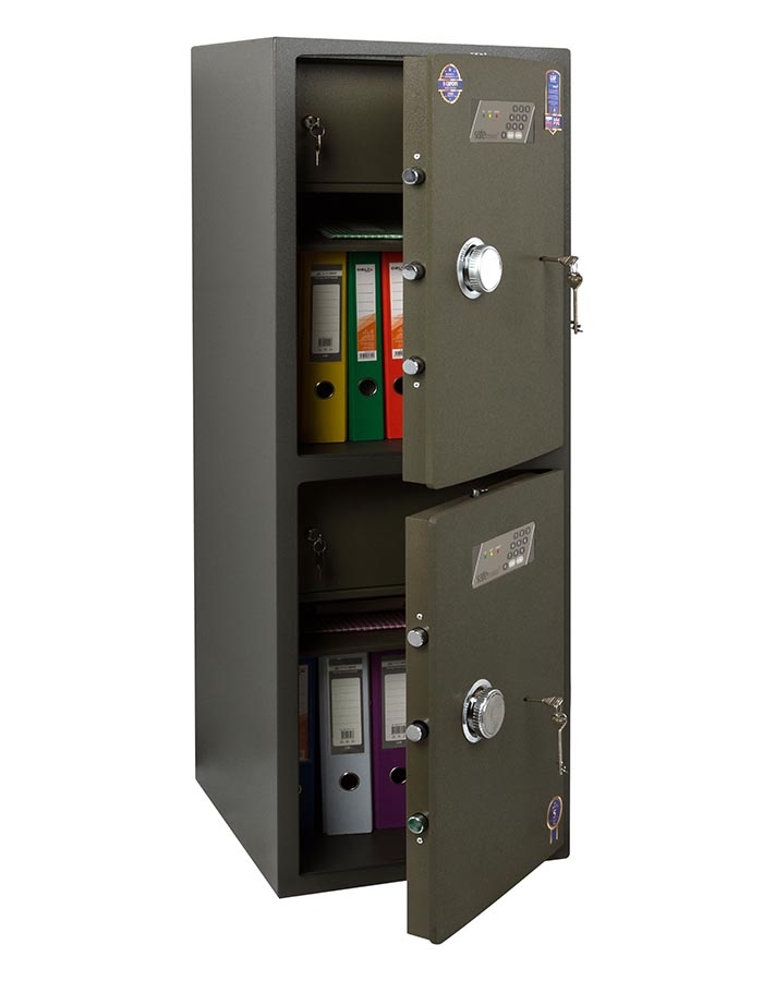 - В каждом отделении кодовый электронный сертифицированный сейфовый замок SAFEtronics (Словакия) + ключевой MAUER (Германия).