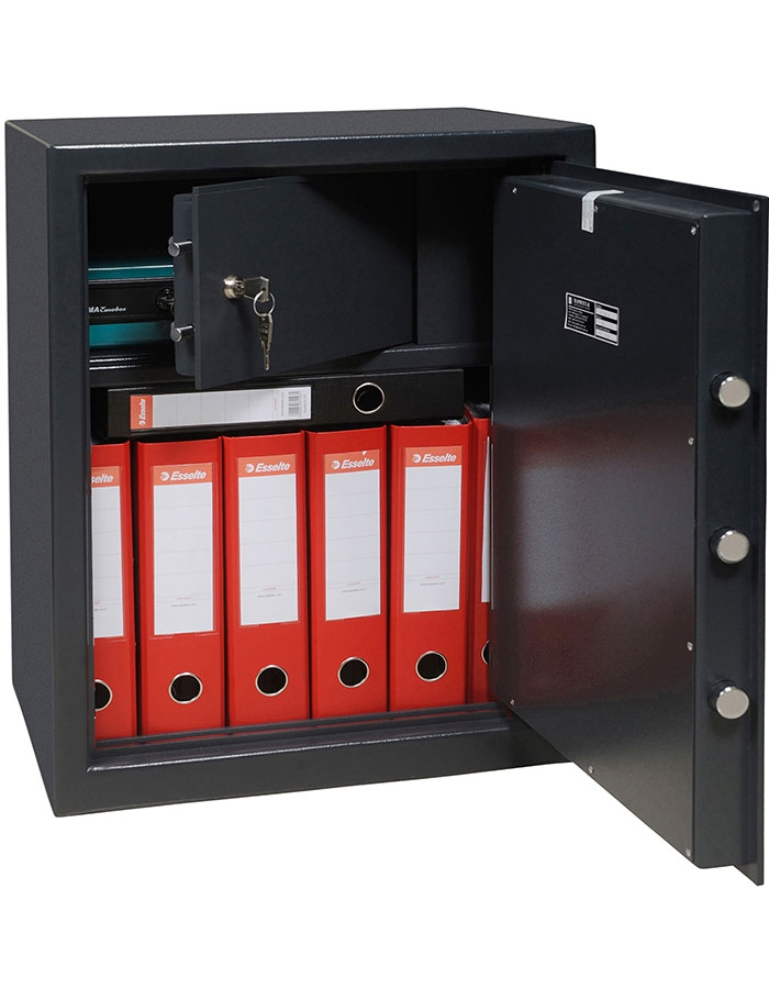 - Сейф оборудован ключевым сейфовым замком Lowe & Fletcher .