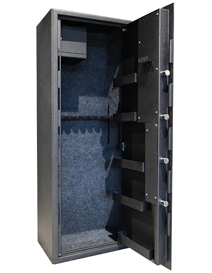 Сейф оружейный SPIKA Large S4B предназначен для хранения 13-ти стволов (6 стволов длиной до 1235 мм и 7 стволов длиной до 1435 мм).