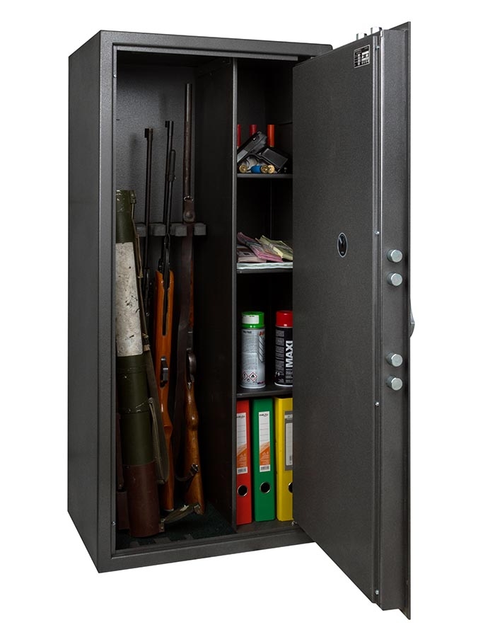 Сейф для ружья Safetronics TSS 125LG/K5 предназначен для хранения 5-ти стволов длиной до 1210 мм.
