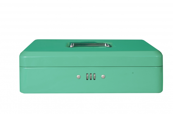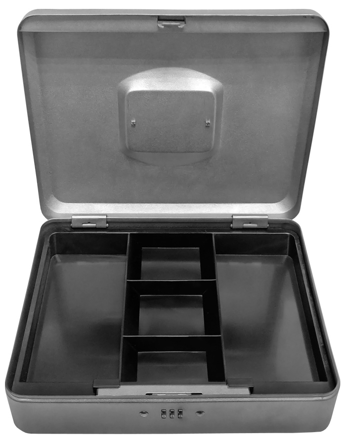 Установленный на данный кешбокс замок работает по тому же принципу, как на дорожном чемодане. Три диска с цифрами от 0 до 9 - и Вы можете их вращать их до совмещения цифр в правильный код. Если код верный, кешбокс откроется.