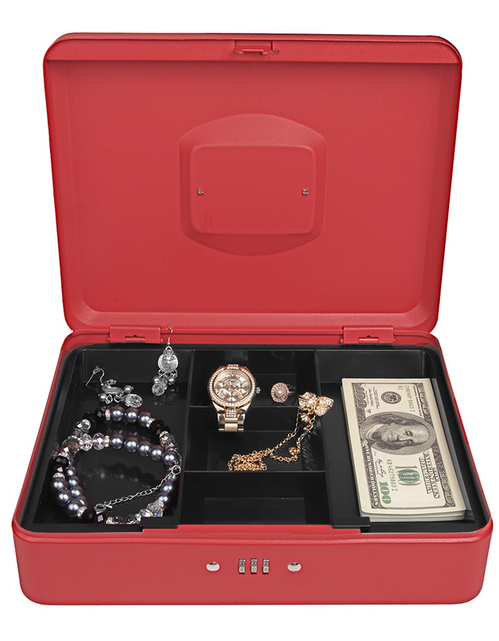 магазине, бутике, офисе. Крепкая металлическая коробка с разделителями станет